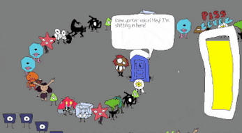 nice. feels like a thecatemites + grace bruxner game. all the art is so vibrant + expressive and it feels really nice and fun just walking around and listening in on all the various people populating the line. i'm not sure if it's possible to get into the bathroom D: but had fun exploring regardless :)